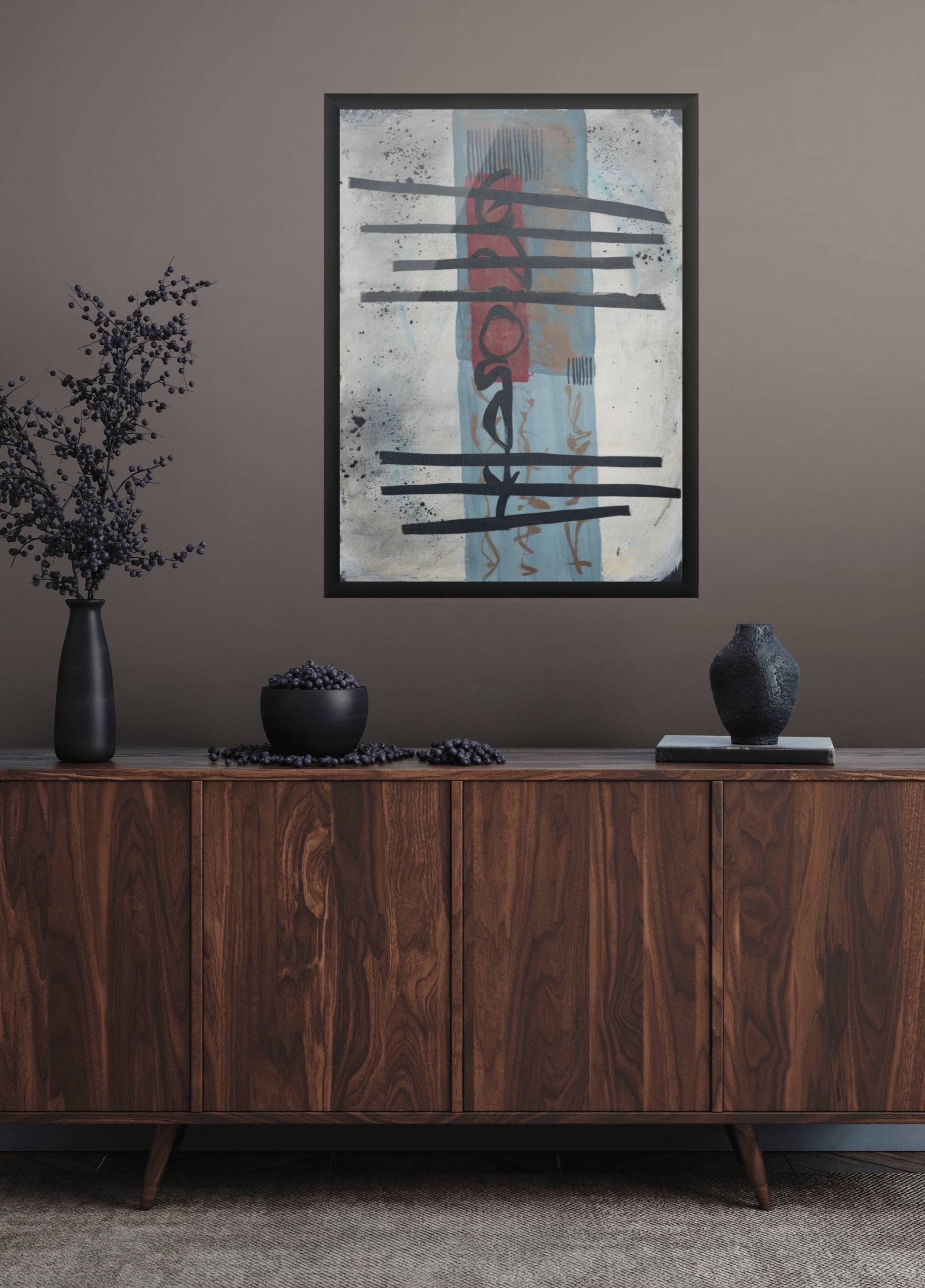 Hand-painted in the Wabi Sabi tradition, this piece evokes the spirit of mono print while honoring the imperfections of layered brushwork. No digital overlays. Every element was created by hand, one layer at a time.